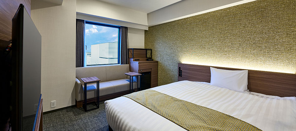 25平米以上の広々としたお部屋で、バス・トイレはセミセパレートタイプ。広々とした168cmクイーンサイズのベッドをご用意しております。