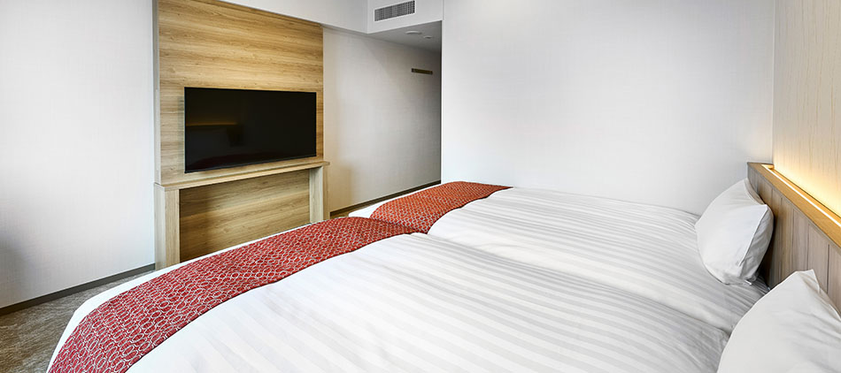 ベーシックなツインルームです。機能性を重視してバス・トイレはセミセパレートを採用。ゆったりとお過ごしいただける広さと快適性を実現しています。