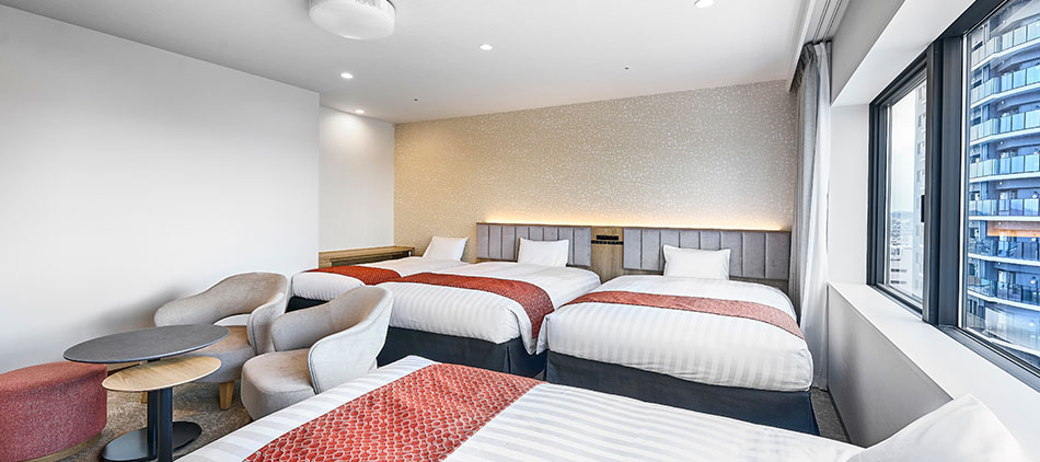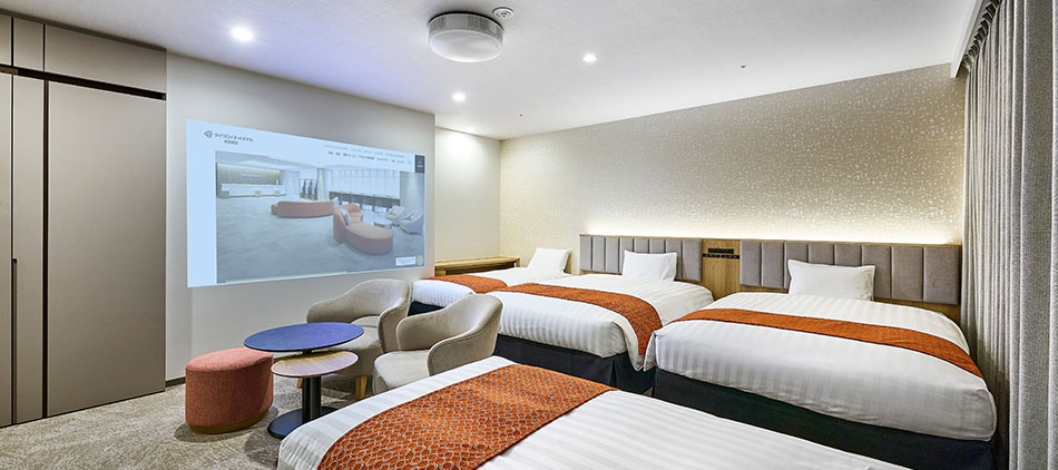 大人4名様まで宿泊できるフォースルームです。グループでのご利用におすすめです。ゆとりのあるスペースで最高のひと時をお過ごしいただけます。※ホームプロジェクター設置